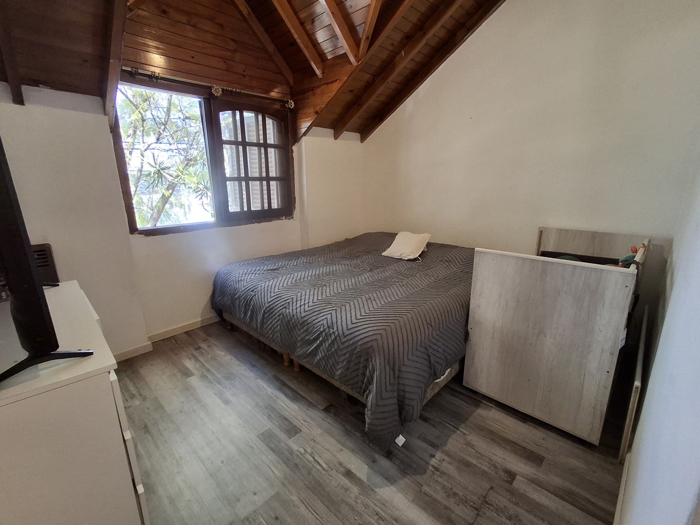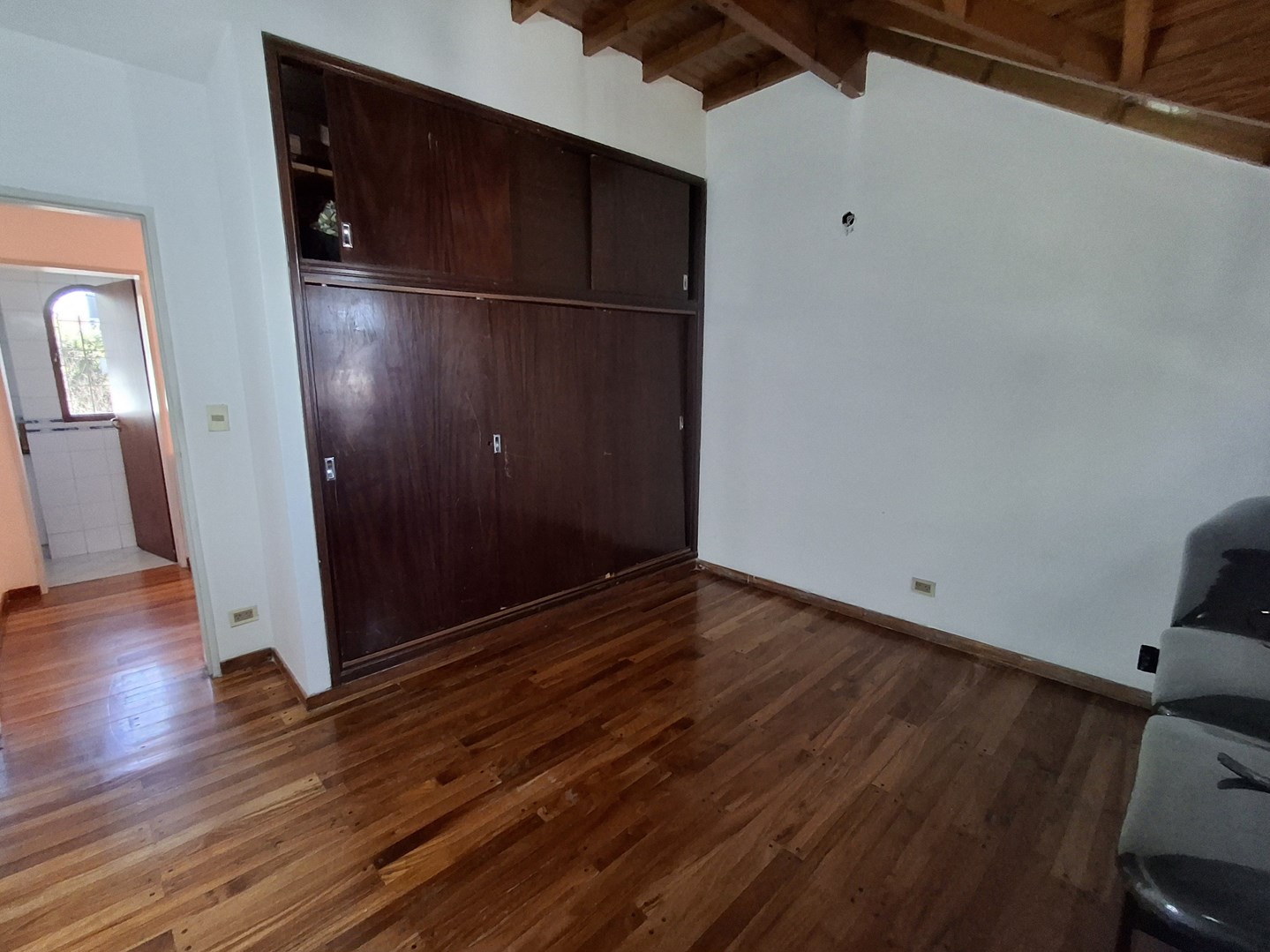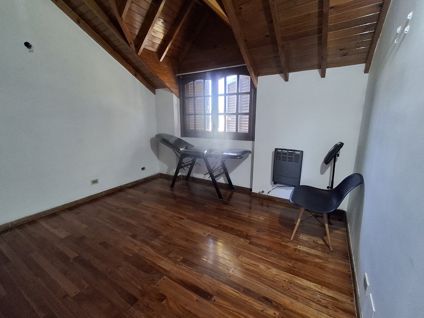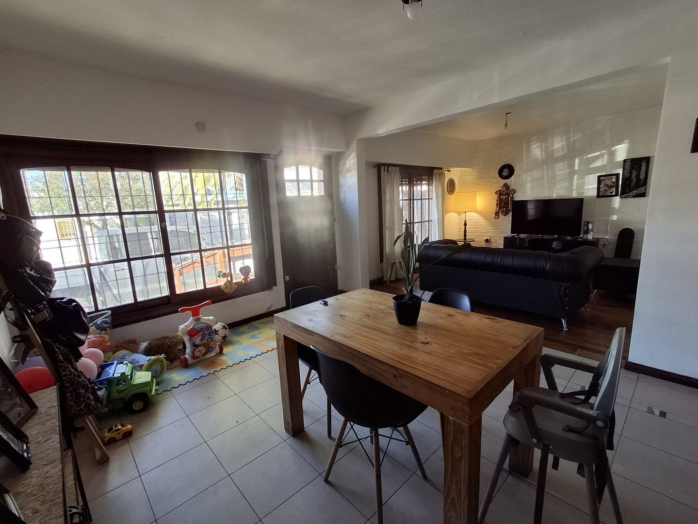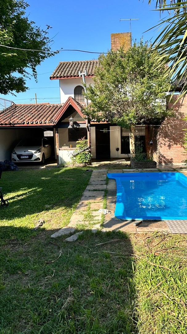 Hermoso chalet con living al frente con pisos tarugados Comedor al frente con piso cerámico con estufa de tiro balanceado Baño completo con ducha Dormitorio con pisos de parquet y placard Cocina comedor diario con muebles bajo y sobre mesada con salida a patio Galeria semicubierta con parrilla En planta alta 2do dormitorio al frente con estufa de tiro balanceado y dormitorio principal con vestidor Baño completo con bañera y antebaño Garage pasante para 2 vehiculos Fondo verde con pileta de fibra de vidrio Cuarto guarda utiles o garage para 3er auto al fondo. Muy buen estado general. Muy luminosa