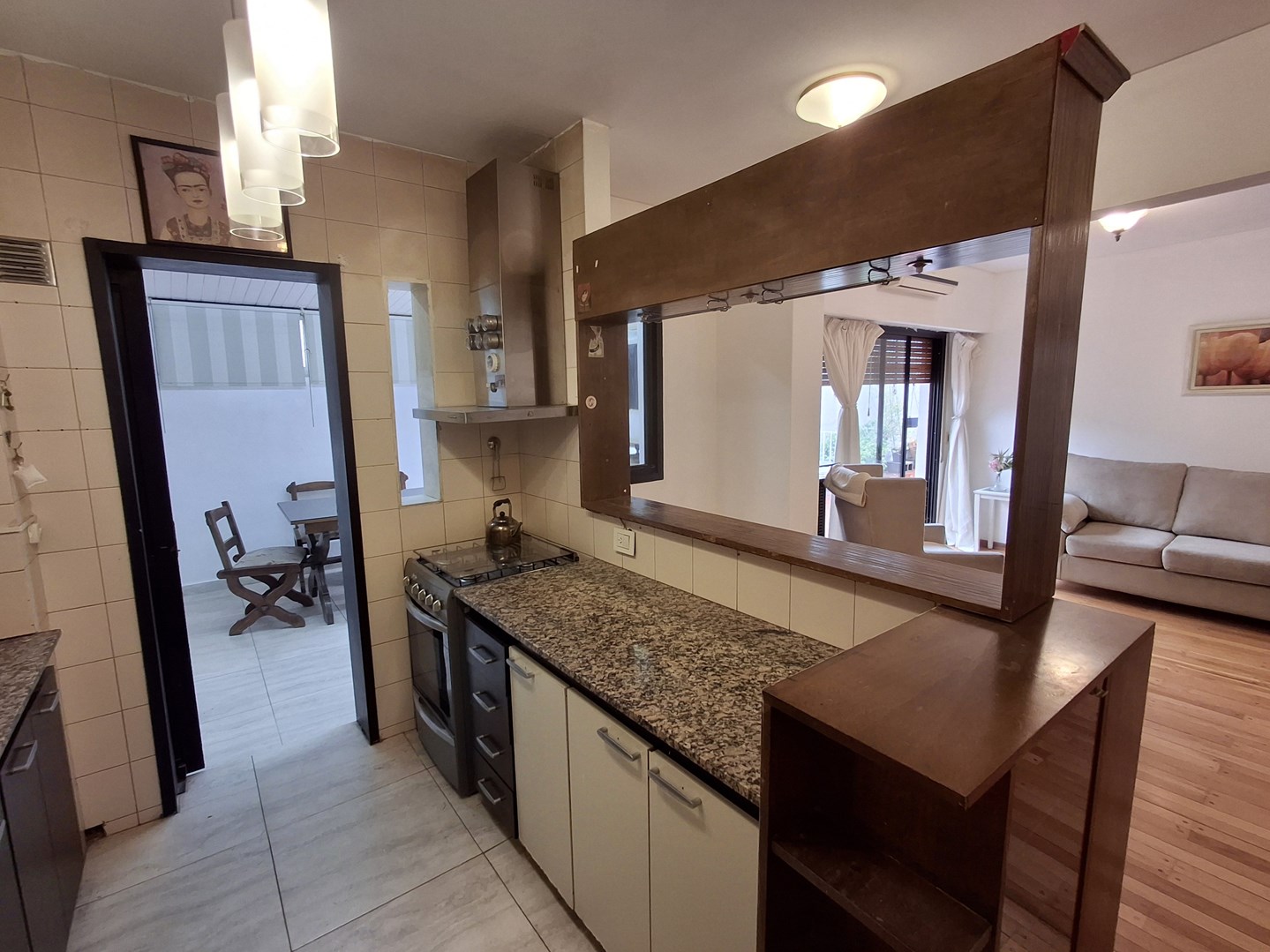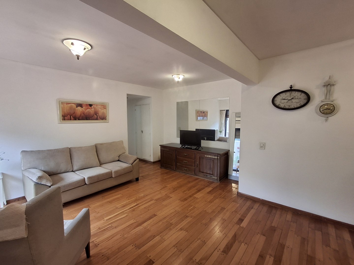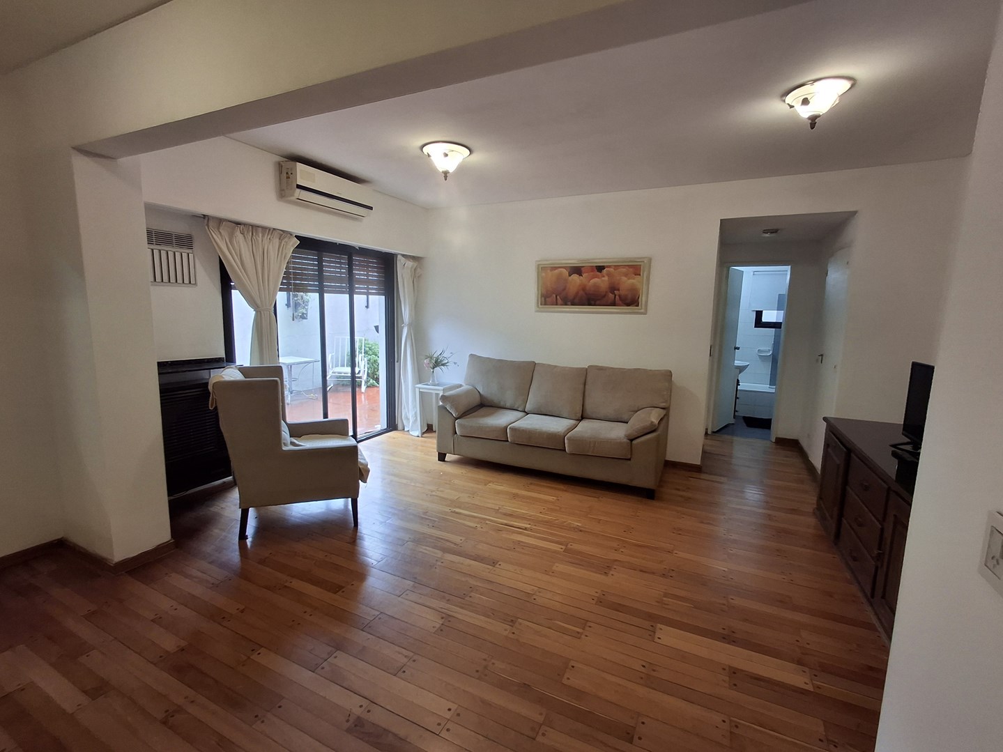 Alquiler de departamento 2 ambientes y medio, compuesto de living comedor con cocina semiintegrada; espacio de comedor diario en patio techado con aire acondicionado y estufa. Gran balcon tipo terraza. Baño completo con bañera, reciclado. Dormitorio principal con placard y salida a patio. El depto se encuentra casi en su totalidad amueblado. Excelente ubicacion a un paso de variedad de comercios, colegios y medios de transporte.