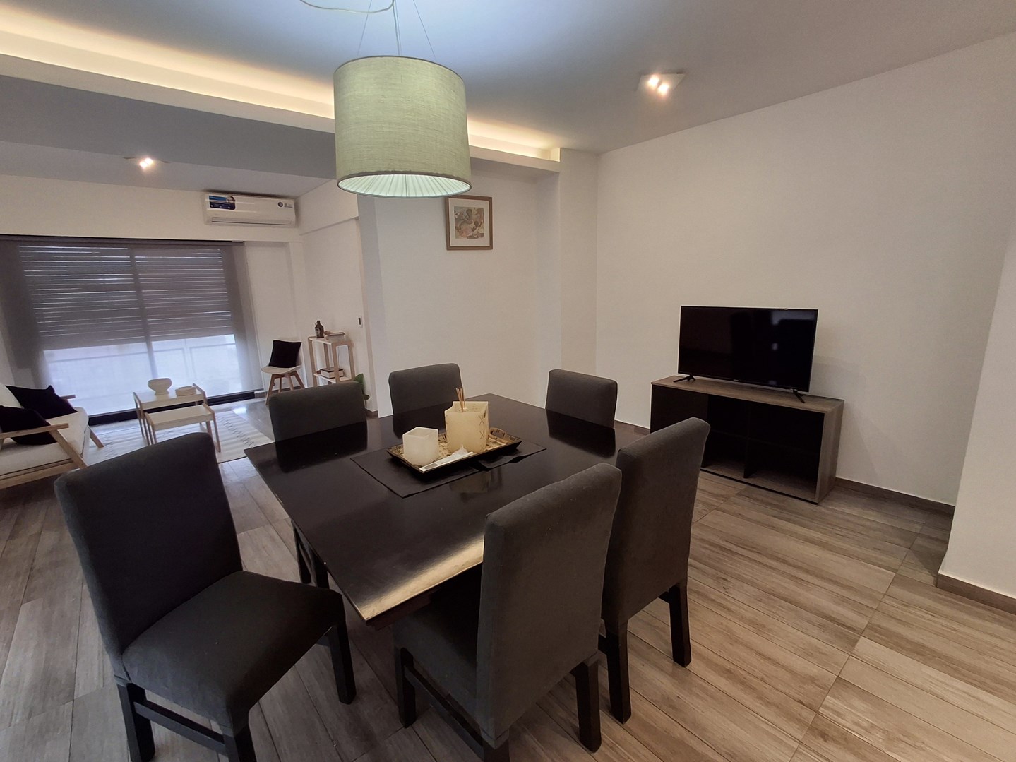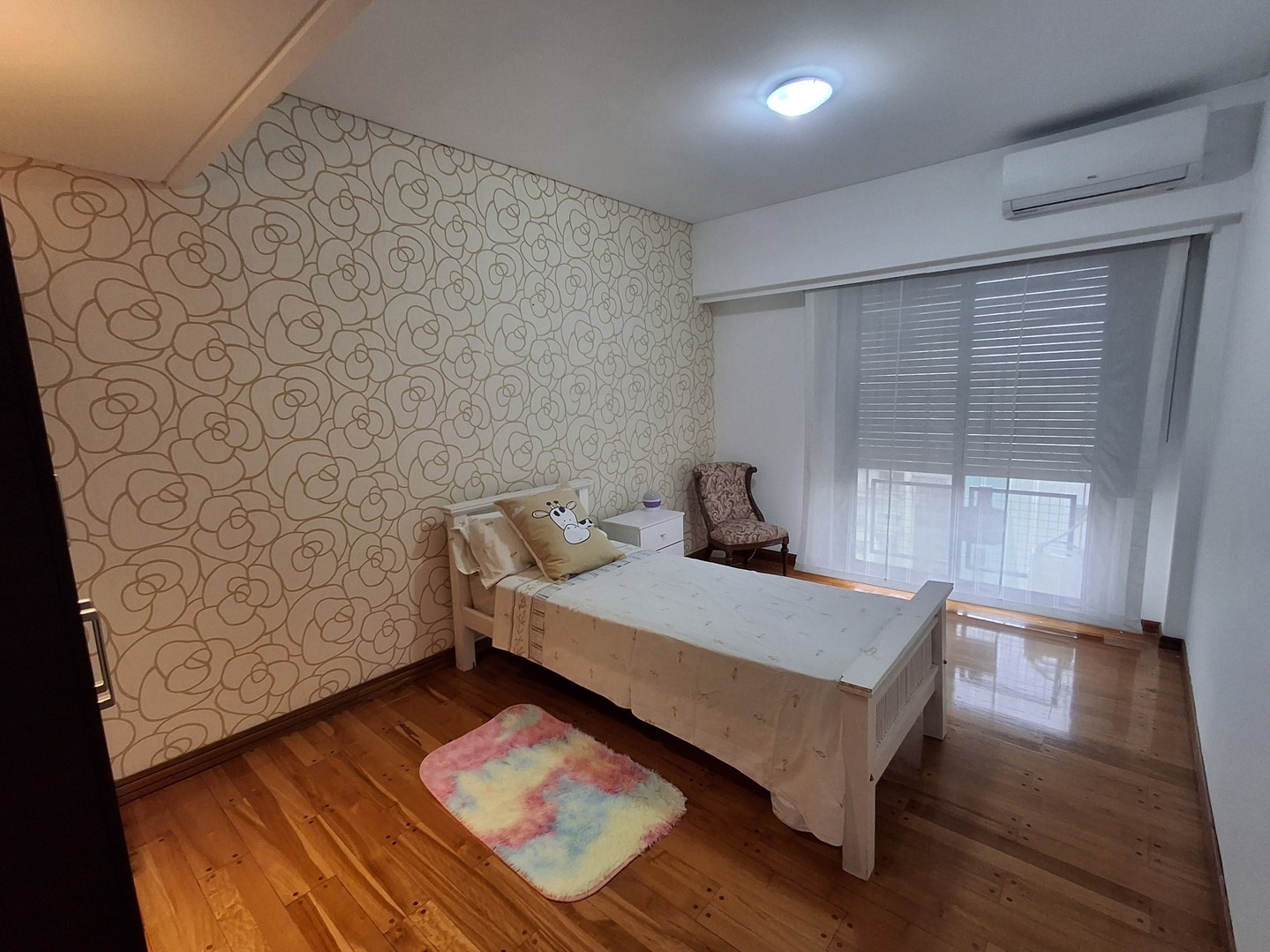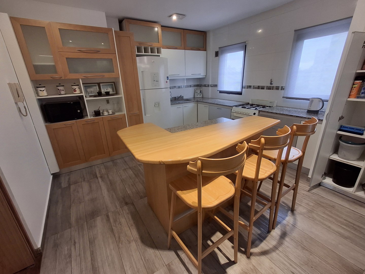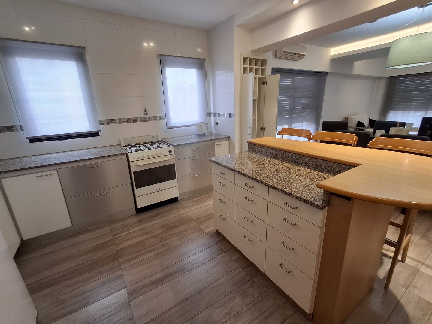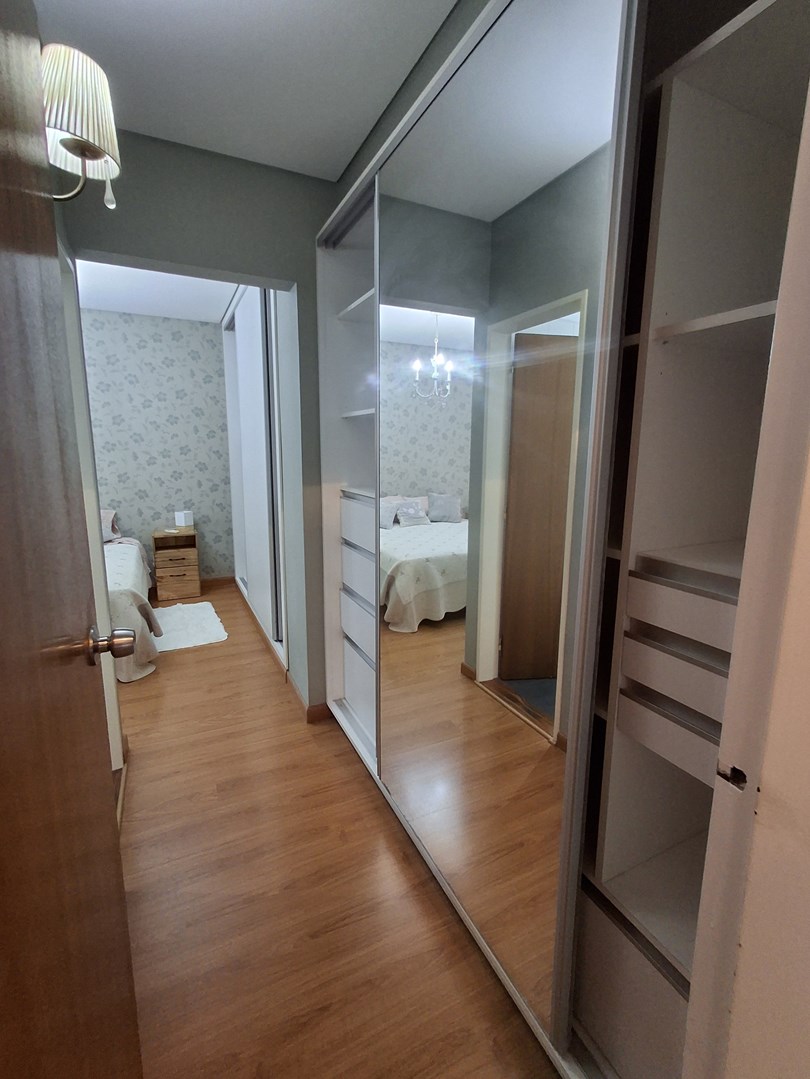 Departamento 4 ambientes amueblado con cochera cubierta – Alquiler Departamento único en su tipo, resultado de la unificación de dos unidades, lo que brinda amplios y cómodos espacios en todos sus ambientes. Distribución y detalles: Hall de ingreso con toilette y tercer dormitorio, ideal como playroom o escritorio. Gran sala de estar con juego de living, aire acondicionado y estufa de tiro balanceado. Dormitorio secundario con amplio placard, aire acondicionado y estufa, con vista lateral. Cocina de generosas dimensiones, equipada con muebles bajo y sobre mesada, amplia mesada e isla con cajoneras. Comedor diario con mesa para 6 personas, aire acondicionado y TV. Sector de living integrado, también con aire acondicionado y TV. Pasillo distribuidor con placard adicional. Baño completo Sector de dormitorio principal con baño completo en suite, con aire acondicionado y amplio placard. Características destacadas: Cochera cubierta. Totalmente amueblado, equipado y decorado. Listo para habitar de inmediato.
