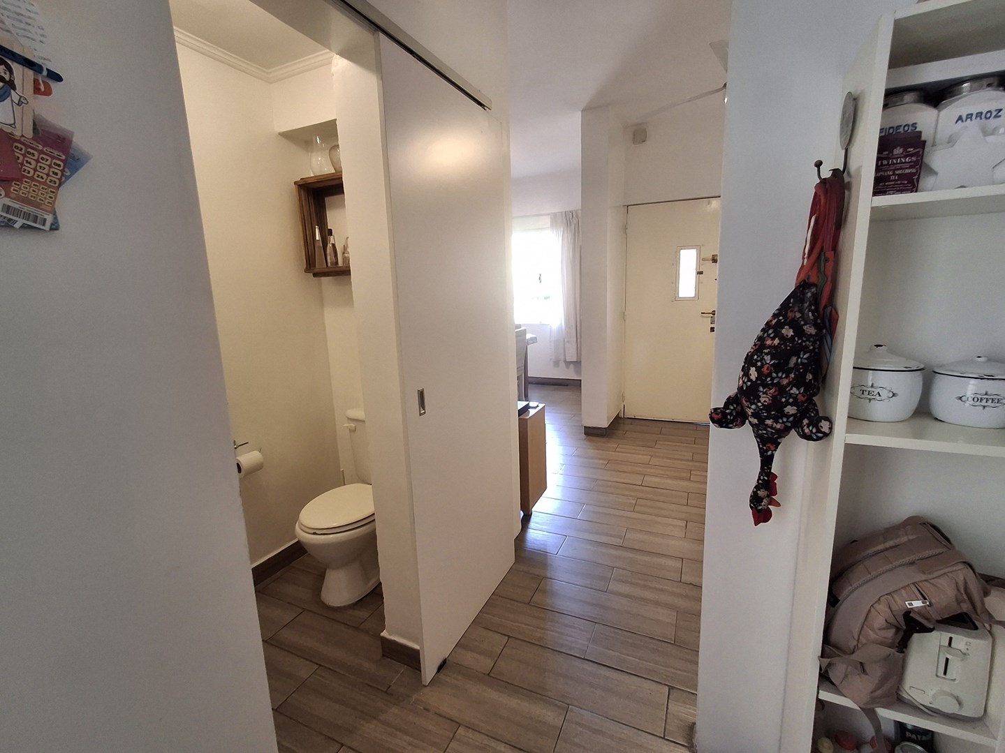 Impecable casa desarrollada en dos plantas, en excelente estado general y con ubicación privilegiada. En planta baja: Amplio living comedor al frente con pisos de porcelanato y estufa. Porch de entrada con reja sobre línea municipal. Cocina equipada con muebles bajo y sobre mesada. Toilette de recepción. Pequeño patio de ventilación con placard, donde se ubican el calefón y la conexión para lavarropas, además de espacio de guardado. Espacio de escritorio junto al acceso a la escalera hacia planta alta. En planta alta: Luminoso hall distribuidor. Dos dormitorios al frente, ambos con placard y aire acondicionado tipo split. Baño completo con ducha y vanitory. Excelente ubicación, con varias líneas de colectivo cercanas, supermercados, colegios y una amplia oferta de comercios. Fácil acceso tanto hacia Quilmes Oeste como hacia Quilmes Centro. Documentacion disponible para Credito Bancario