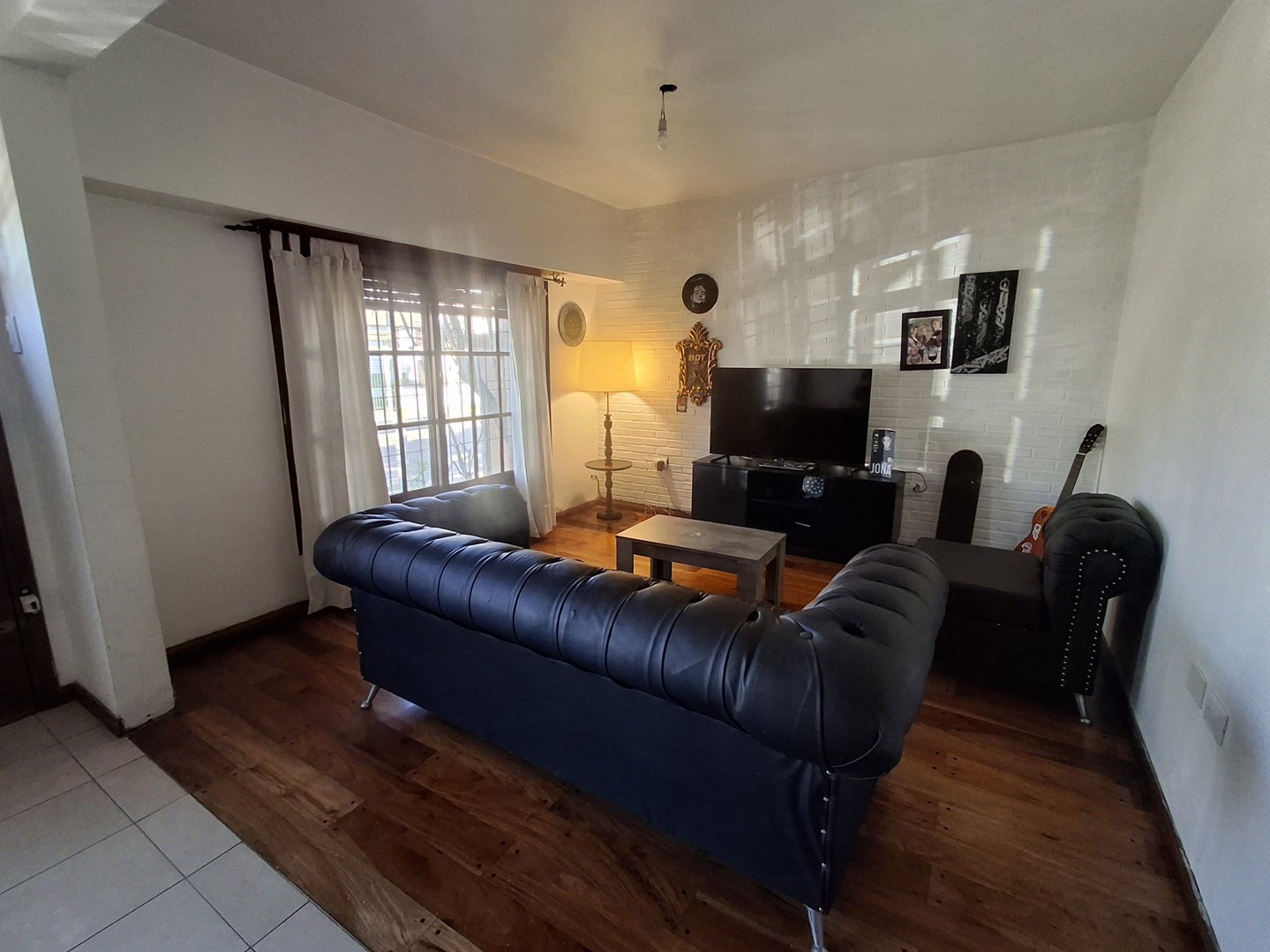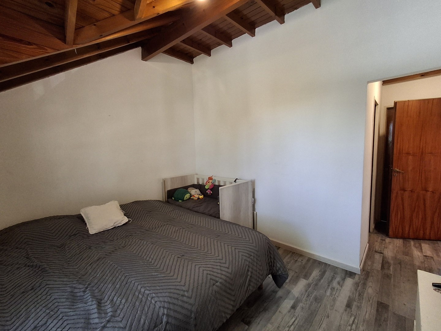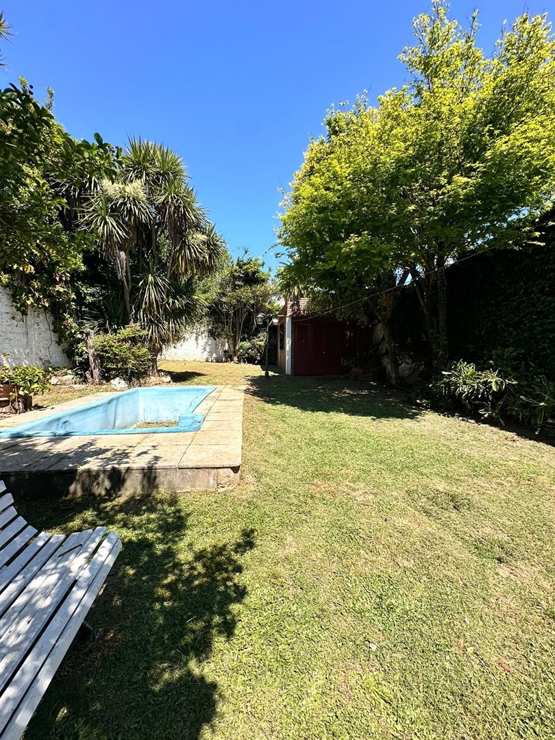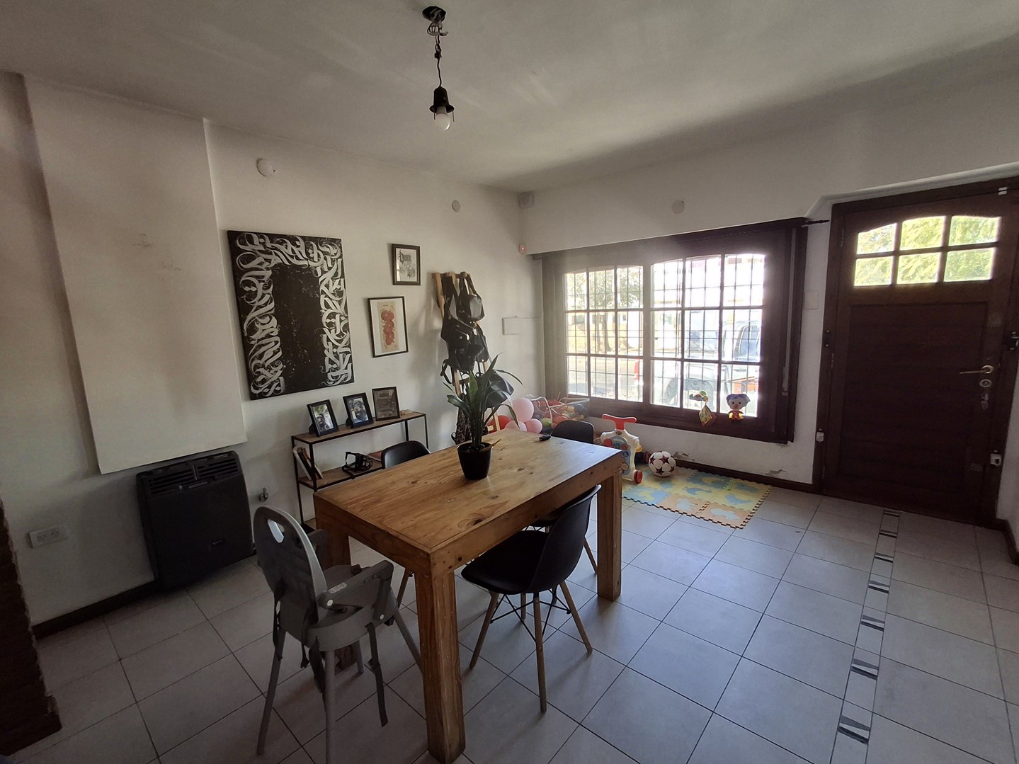 Hermoso chalet con living al frente con pisos tarugados Comedor al frente con piso cerámico con estufa de tiro balanceado Baño completo con ducha Dormitorio con pisos de parquet y placard Cocina comedor diario con muebles bajo y sobre mesada con salida a patio Galeria semicubierta con parrilla En planta alta 2do dormitorio al frente con estufa de tiro balanceado y dormitorio principal con vestidor Baño completo con bañera y antebaño Garage pasante para 2 vehiculos Fondo verde con pileta de fibra de vidrio Cuarto guarda utiles o garage para 3er auto al fondo. Muy buen estado general. Muy luminosa