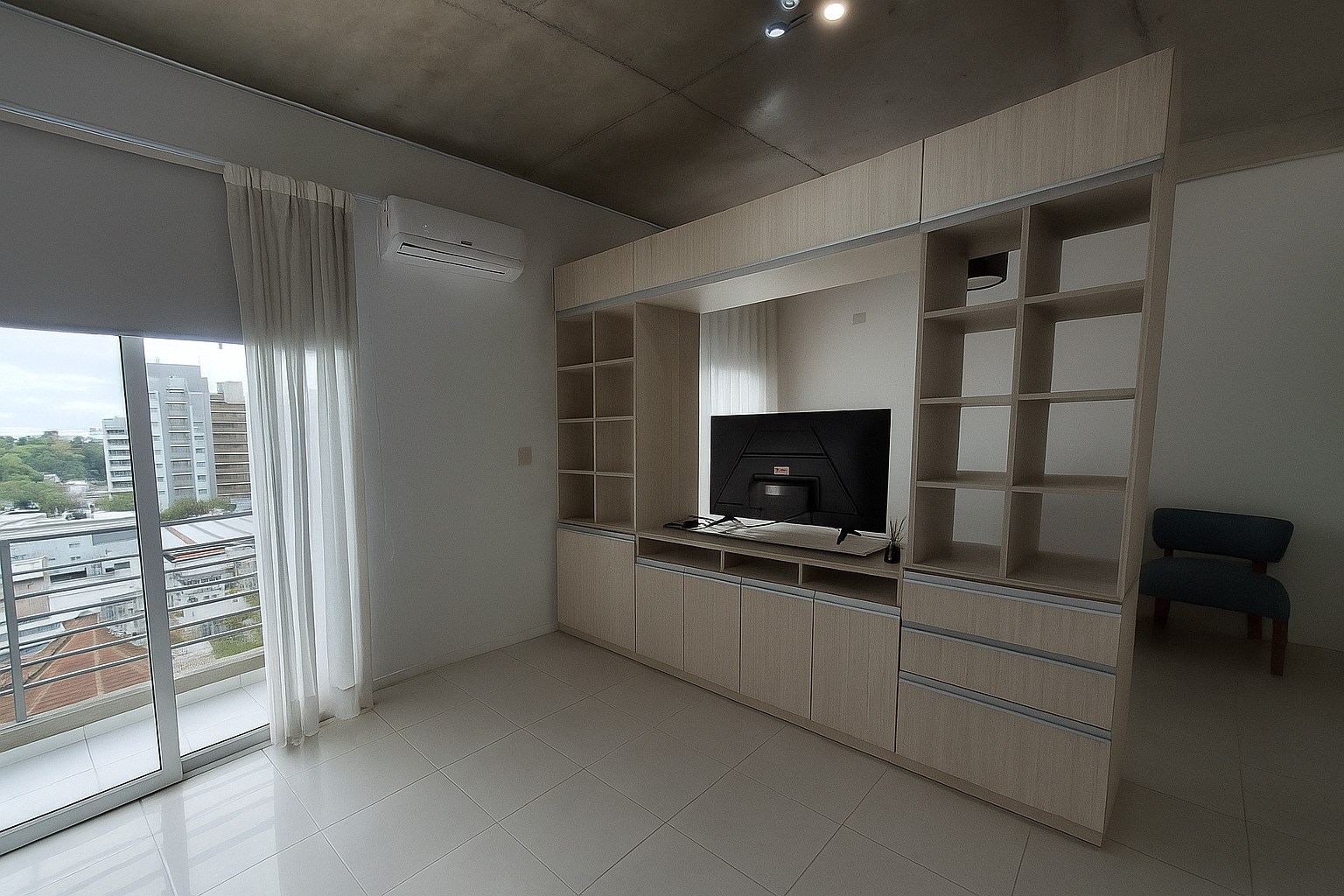 Alquiler oficina monoambiente apto profesional. Sector de kitchenette con muebles bajo y sobre mesada, heladera con freezer, horno microondas, anafe eléctrico y termotanque eléctrico. Aire acondicionado split de pared, amplios ventanales hacia calle Alvear (uno con balcón). Mueble divisor organizador de ambiente. Placard con frente integral e interiores. Baño completo con ducha. Alquiler mas expensas (en ellas se abona municipal, aysa y consumo eléctrico)